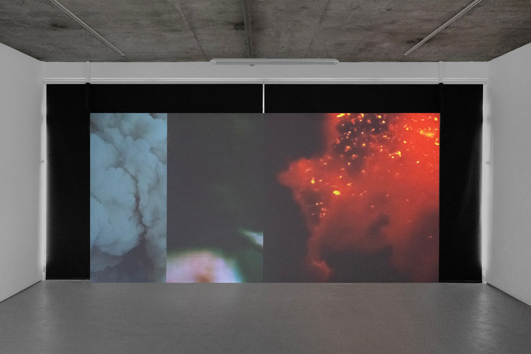 Right: Provenance, Obselete 2024, Image: Giclée, Torchon Matt Archive Paper Clouded Mould Feel, 80x40cm; Script: Laser Print, Recycled Paper, 20x40cm, White Box Frame, Anti-Reflective Glass; Left: AMONGST THE STARS AGAIN 2023, Single-channel video, 02:30 mins, Credits: A Film by Divine Southgate-Smith